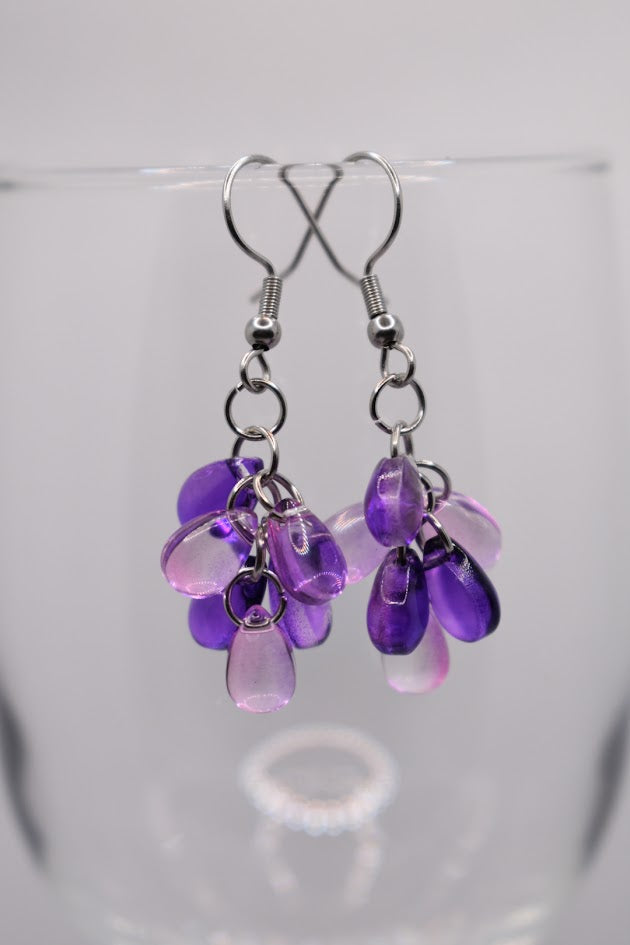 Nämä Lasipisara-korvakorut tuovat pisaran verran väriä ja keveyttä päivääsi. Valo kimmeltää kauniisti käsin kootuissa lasihelmiryppäissä, ja jokainen pari on uniikki – kuin pieni värillinen sadepilven pisara korvissasi.