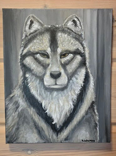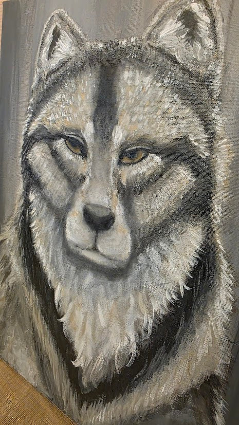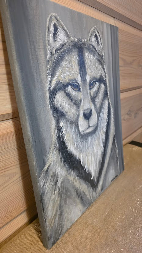 Tämä uniikki susitaulu huokuu rauhaa, voimaa ja arvokkuutta. Suden katse on samalla lempeä ja viisas, ja teos tuo tilaan luonnon karun kauneuden sekä hiljaisen voiman.