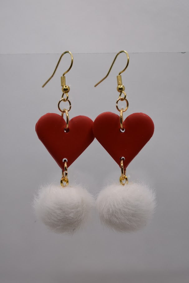 Suloiset punaiset sydänkorvakorut, joissa kevyesti kimaltava tupsu tuo asuun pehmeyttä ja leikkisyyttä. Sydän on käsintehty fimomassasta, ja metalliosat sydänosassa ovat laadukasta kirurginterästä (saatavilla myös kultaisena). Tupsuosa on metallia ja keinokultaa, eikä sisällä kirurginterästä.