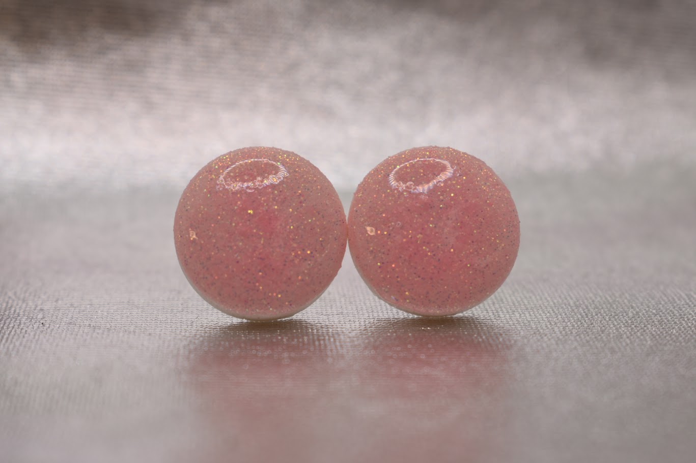 Glitterörhängen är lätta örhängen med en vackert glittrande yta. Storleken är cirka 1,5 cm och metalldelarna är tillverkade av kirurgiskt stål. Örhängena passar både vardags och festliga tillfällen, och de är handgjorda. Varje par är unikt tack vare de naturliga variationerna i glitterytan.